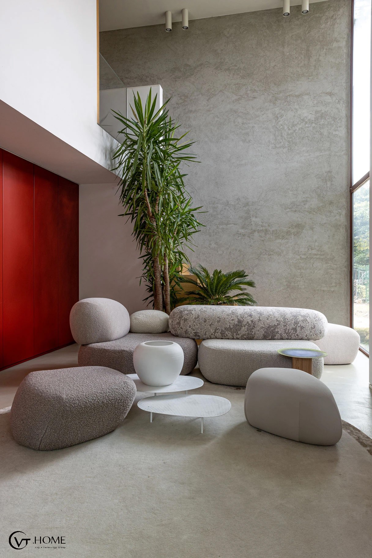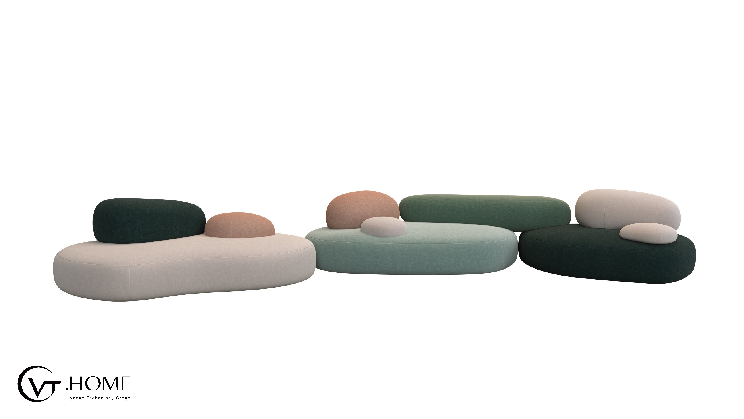 来自大自然的馈赠,设计师取材灵感于大自然,把岩石、苔藓和倒下的树木想象成家具和让身体休息的地方,是一种愉快的感官体验。 设计师对多次看到的岩石进行3D扫描,再将这些有机形状填充成家具,真实还原这些鹅卵石沙发在森林中的样子,将随性和舒适带到日常生活中。 这个沙发系统有多个不同形状的模块,可以自由、灵活的创意组合,从单把扶手椅到复杂景观的创造,无限的组合可能性将空间变得与众不同。 摆放在家中,可以根据家中大小,选择多少个的模块进行自由组合,使得这款沙发可以出现N种造型,搭配多种色彩,让家变的与众不同。